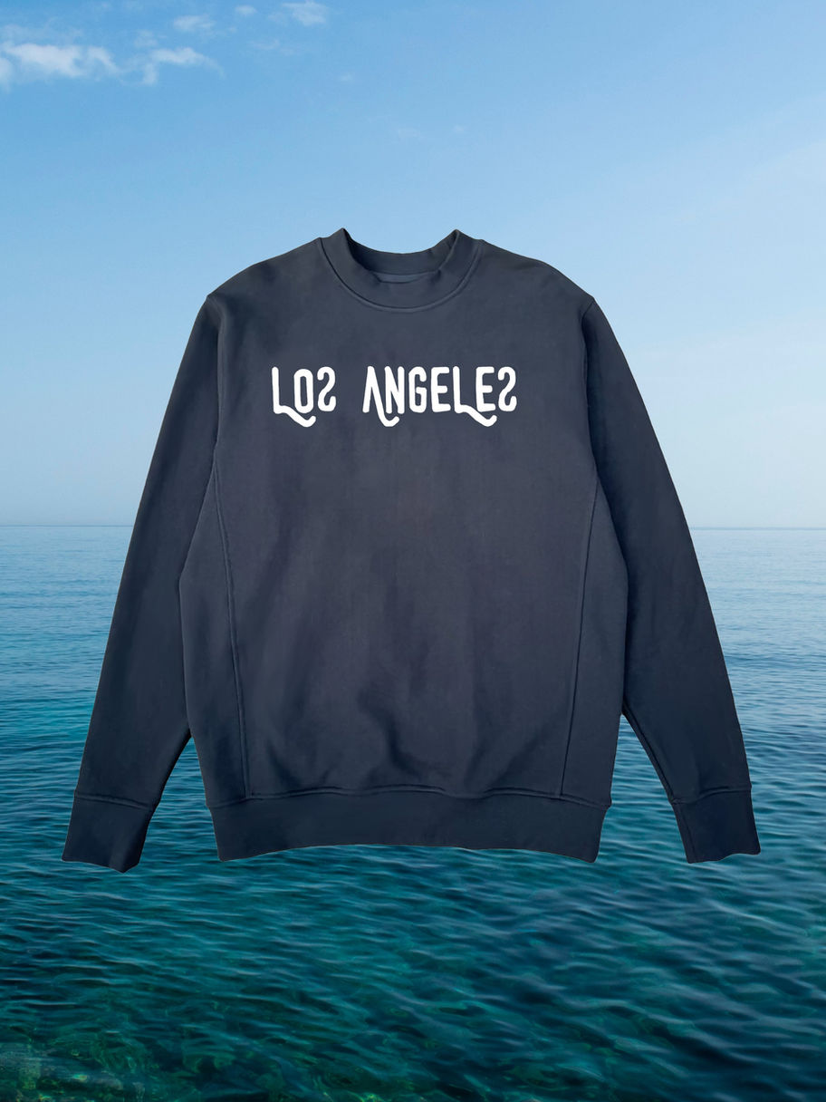 The Brando classic crewneck in an ultra premium heavyweight French Terry. Relaxed fit with side panel inserts. LOS ANGELES in w white thick yarn-stitch embroidery across chest and OLA logo printed on back.